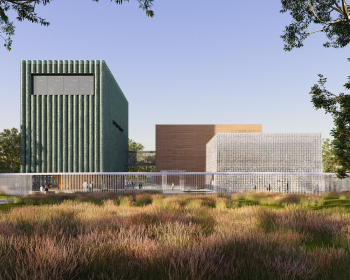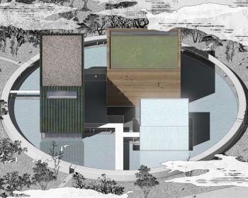 OPEN建筑事务所设计的舍得文化博物馆于2026年1月封顶。博物馆位于四川射洪舍得酒厂的东花园中。在雾气氤氲、群山环抱的涪江之畔,三座岛屿状的建筑体量从一个宽阔的圆形水池中浮现出来,构筑了穿越传统与未来的“一池三山”。