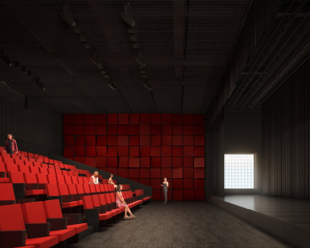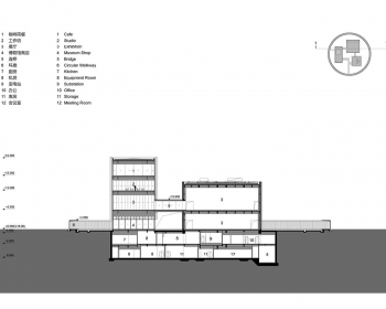 三个漂浮的盒子容纳了入口门厅、展览空间、工作坊、餐厅及体验商店等主要公共功能。水面之下,建筑空间为完整一体,包括了多功能小剧场、排练厅、水吧、办公及后勤等完备的功能,既为观者提供更多维度的丰富体验,也以连续空间的包容性成就了地上的纯净和诗意。