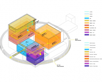 OPEN的设计始于选址和造园(圆)。建筑师发现了东花园,这里靠近公路和厂区入口,但因为离开生产核心区,目前使用很少,却非常适合成为未来公众与酒厂的连接界面。