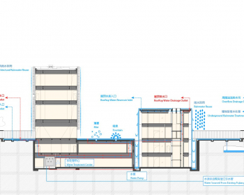 博物馆在设计上整合了被动式与主动式的节能策略,以构建低碳且具韧性的环保节能建筑体系。地源热泵系统和水蓄冷及蓄热系统的同时运用,可以极大地减少运行费用。青铜盒子屋顶设置太阳能光伏发电系统。生活热水采用空气源热泵及太阳能板,新风系统利用热回收。同时,项目建立了水循环系统,收集和再利用雨水,并采用酒厂生产中引流的涪江江水用于水池景观,充分利用了场地内及周边既有的基础设施和资源。